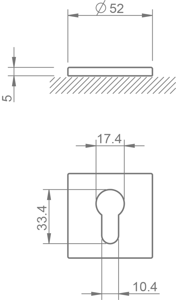 Espelho de chave/ROSETAS par quadrado 52mm. Entrada cilindro europeu.