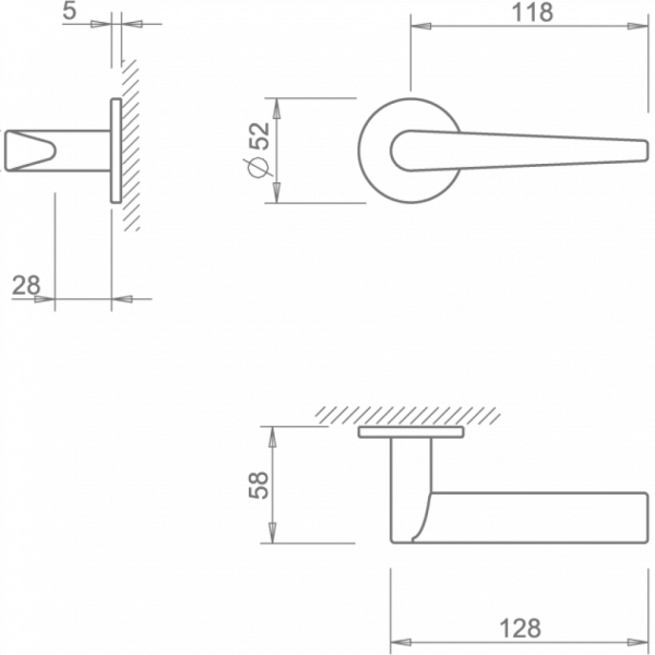 Puxador par. Espelho 5mm. Fácil encaixe em adaptador metálico com sistema “click”. Mola recuperadora reversível. Ferro quadrado de 8x100mm. Fixação da muleta com perno M6 oculto. Equipado com espelho de chave.