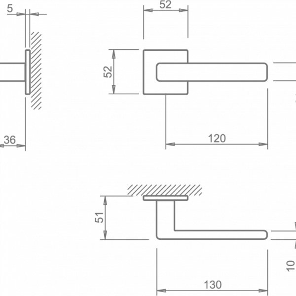 Puxador par. Espelho 5mm. Fácil encaixe em adaptador metálico com sistema “click”. Mola recuperadora reversível. Ferro quadrado de 8X100mm. Fixação da muleta com perno M6 oculto.