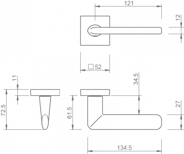 Eliptica Line. Puxador par. Espelho quadrado de 52mm. Fácil encaixe em adaptador metálico com sistema “click”. Mola recuperadora reversível. Ferro quadrado de 8x100mm. Fixação da muleta por perno roscado M6 oculto. Equipado com espelho.