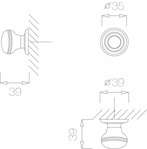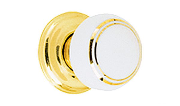 Puxador para mobiliário. Punho em porcelana decorada a ouro. Espelho de Ø39mm. A fixar com parafuso central M4x25mm.